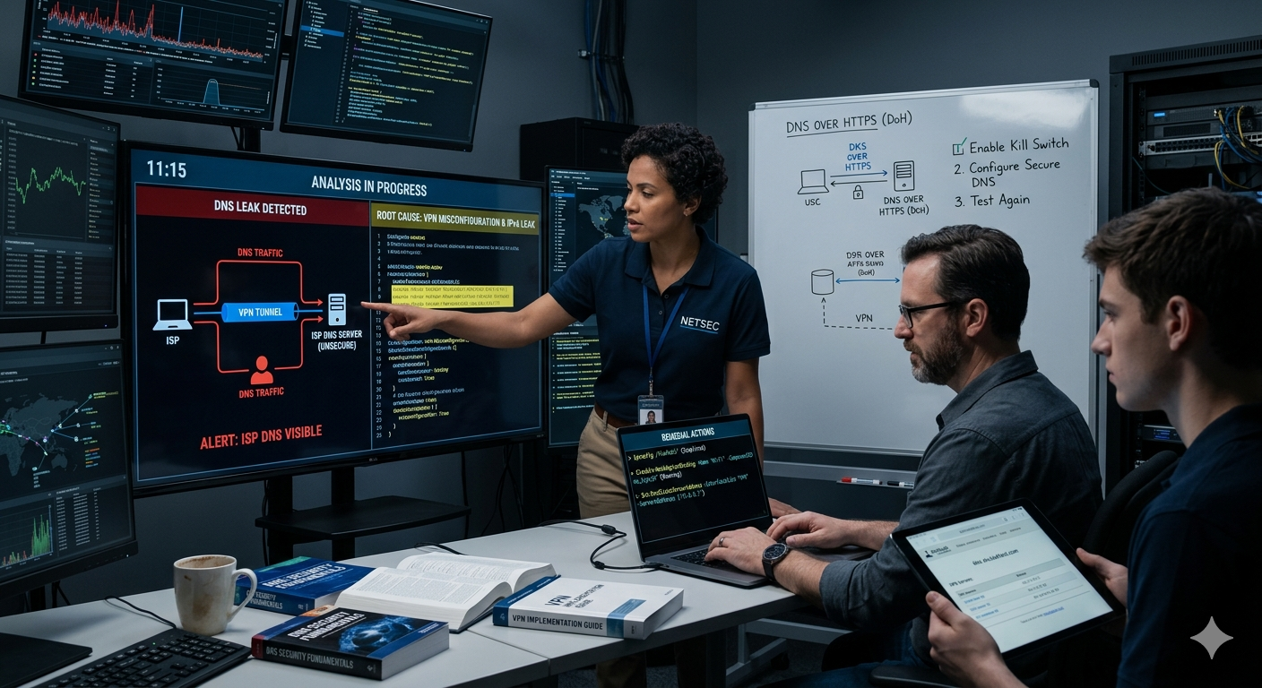 DNS 누수 원인을 분석하고 해결 방안을 찾는 모습