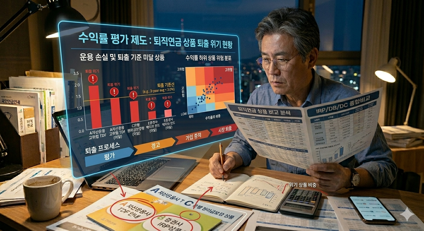 수익률 평가 제도로 인해 퇴출 위기에 놓인 퇴직연금 상품들을 보여주는 그래프