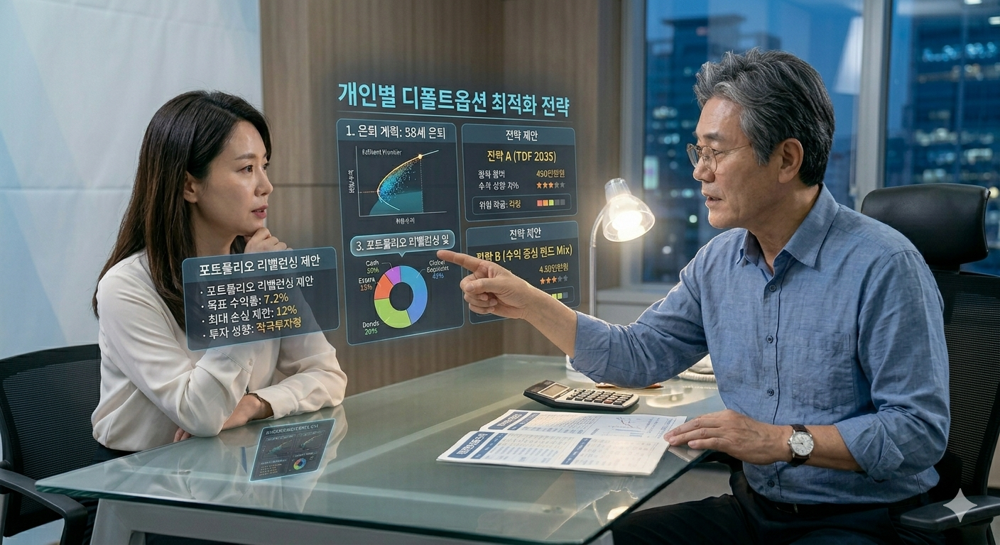 개인의 은퇴 계획과 투자 성향에 맞춰 디폴트옵션 전략을 세우는 모습