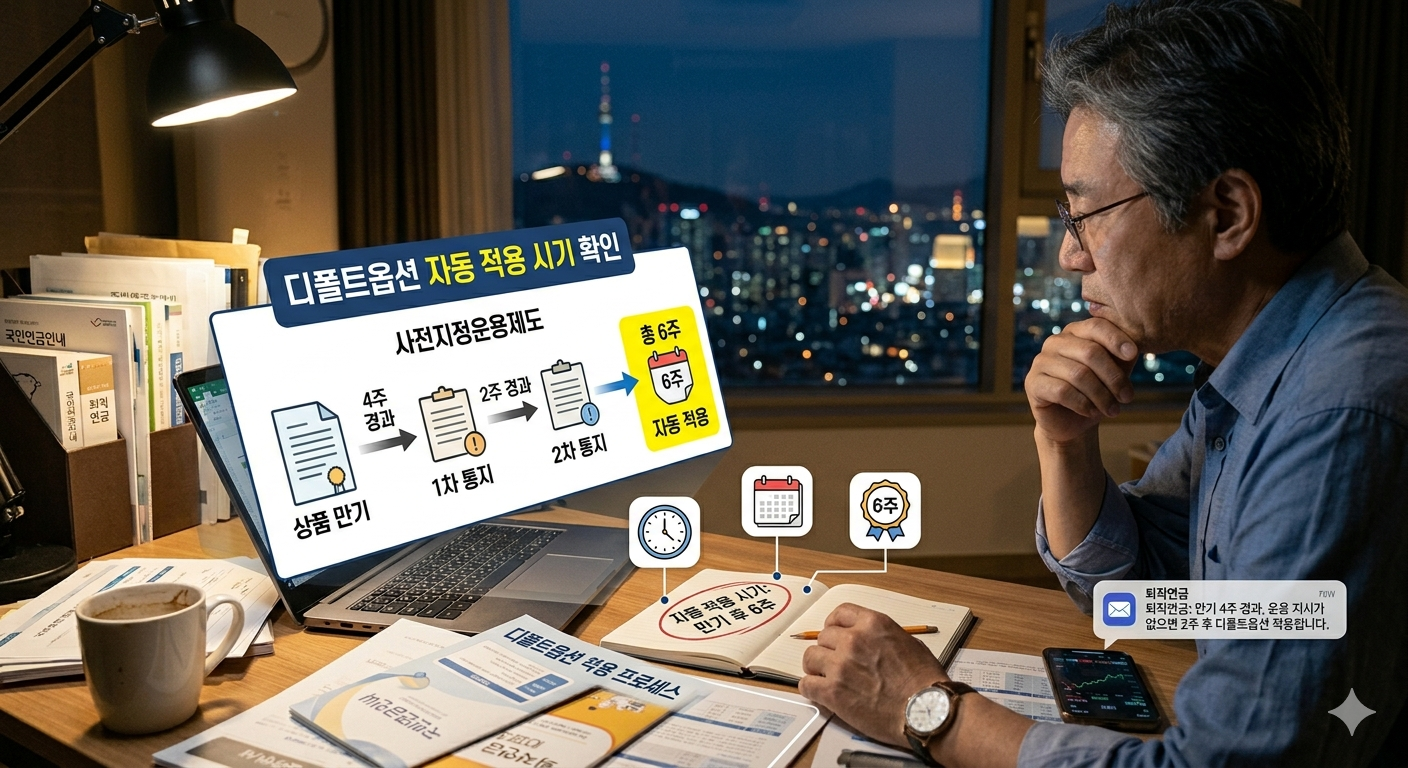첫째, 신규 적립금이 입금된 후 2주간 운용 지시가 없을 때입니다. 둘째, 기존에 가입했던 상품이 만기된 후 6주간(정기예금 만기 시에는 4주 대기 후) 운용 지시가 없을 때 자동 적용됩니다. DB형 퇴직연금은 회사가 직접 운용하므로 디폴트옵션 적용 대상에서 제외됩니다.