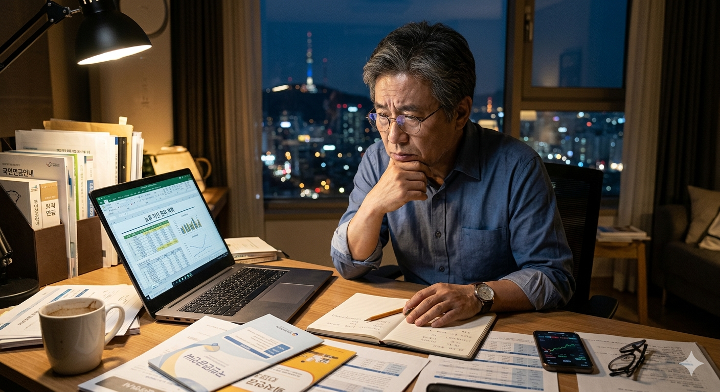노후 자산 관리에 대해 고민하는 한국인 직장인의 모습