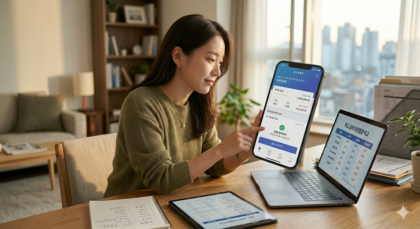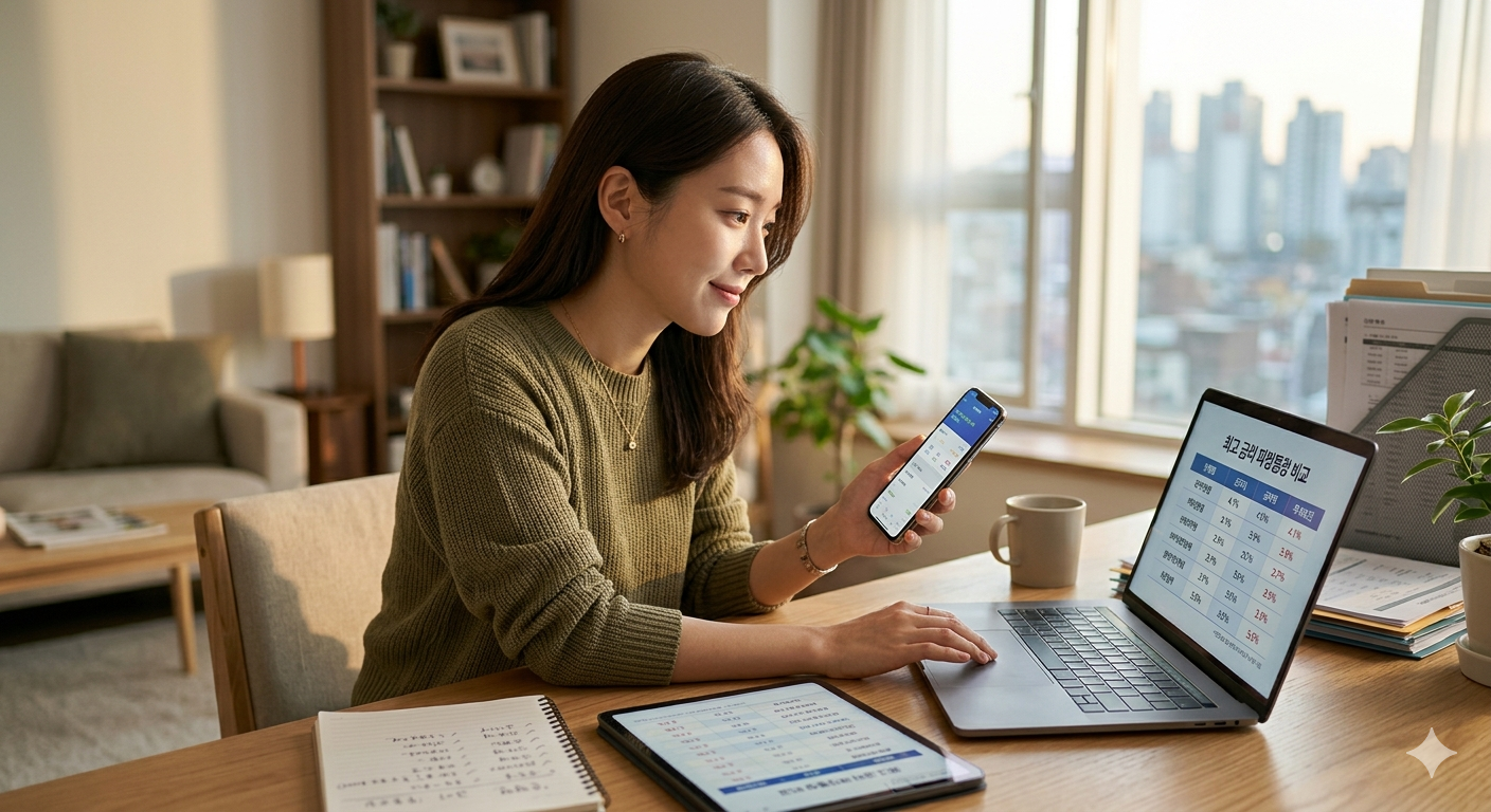 다양한 금융 상품을 비교하며 최적의 선택을 하는 모습