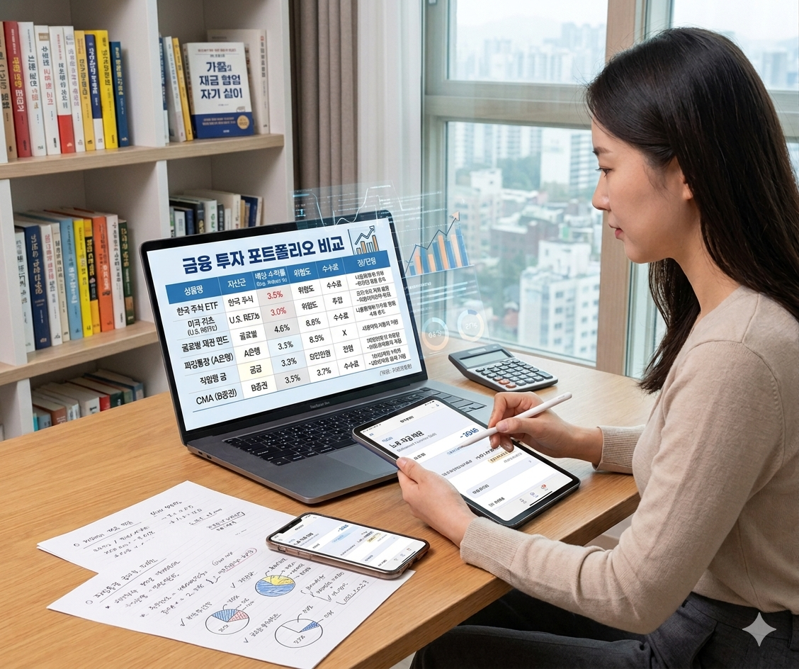 금융 상품을 비교하며 투자 계획을 세우는 모습