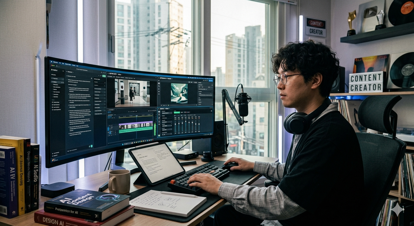 여러 AI 툴을 활용해 작업하는 콘텐츠 크리에이터