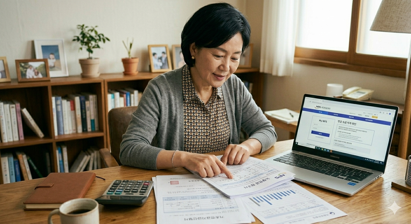 연금과 관련된 서류를 검토하는 모습