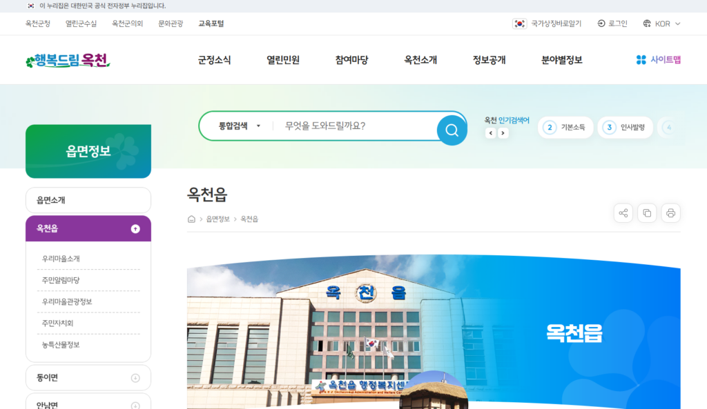 영동군 홈페이지에서 영동읍행정복지센터 관련 내용