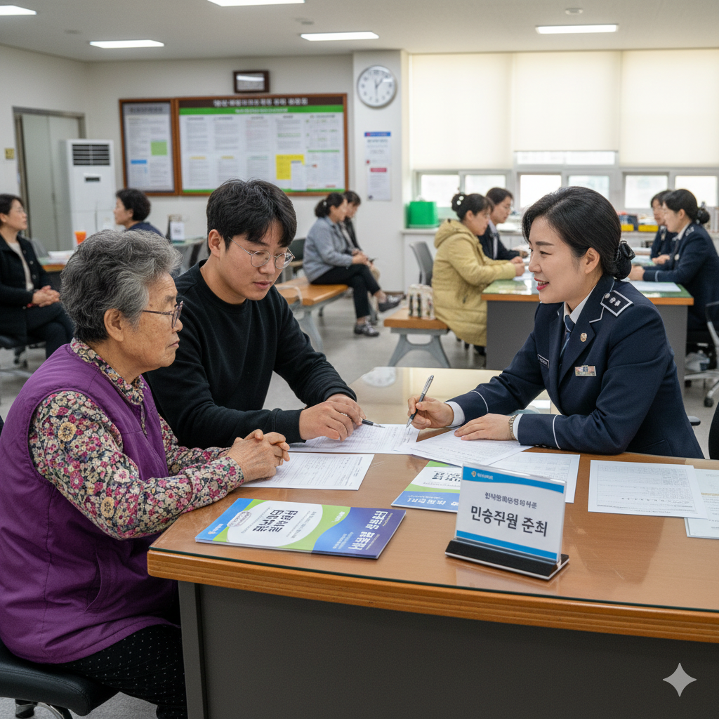 주민센터에서 민생지원금 신청 서류를 확인하는 모습