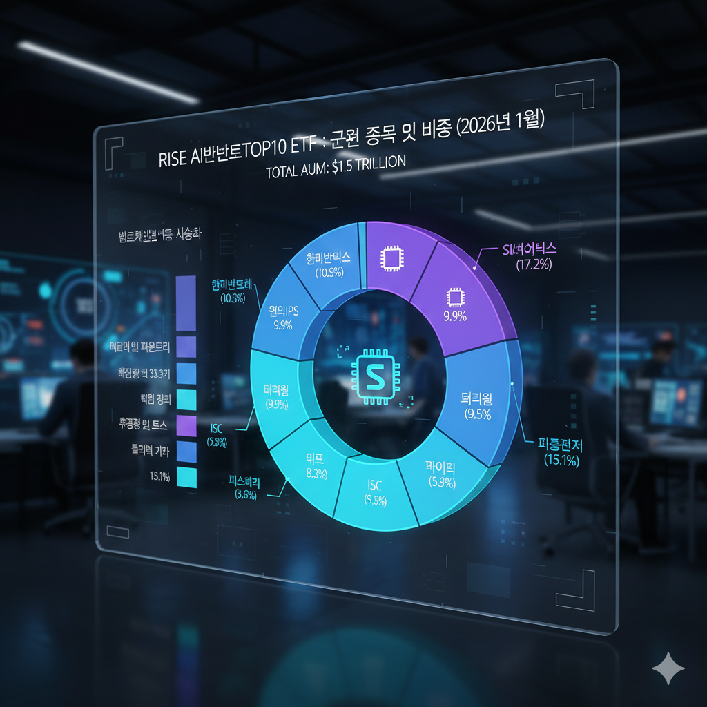 많은 AI 반도체 ETF 중에서 KB자산운용의 RISE AI반도체TOP10(종목코드: 0093A0)은 특히 주목할 만합니다. 2025년 8월 26일 상장된 이 ETF는 국내 AI 반도체 기업 중 TOP10에 분산 투자하는 상품입니다. FnGuide AI반도체TOP10 지수를 추종하며, 개별 종목의 최대 편입 비중을 15%로 제한하여 특정 대형주에 쏠리는 위험을 줄였습니다.