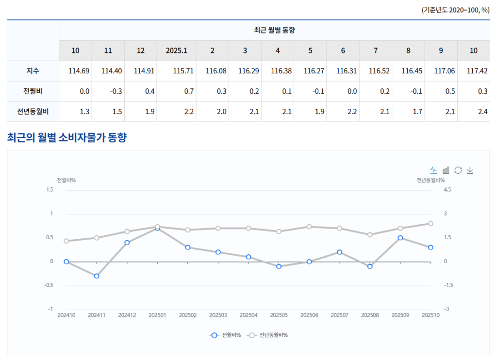 물론 2025년 10월 기준으로는 전년 동월 대비 2.4% 상승했지만, 연간 전체로 보면 하반기부터는 점차 둔화될 것이라는 분석입니다. 이는 국제유가와 같은 외부 요인과 국내 수요 압력이 완화되는 덕분입니다. 2025년 10월 소비자물가동향 자료를 참고해 보세요.